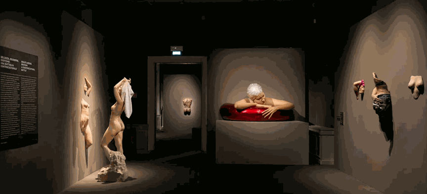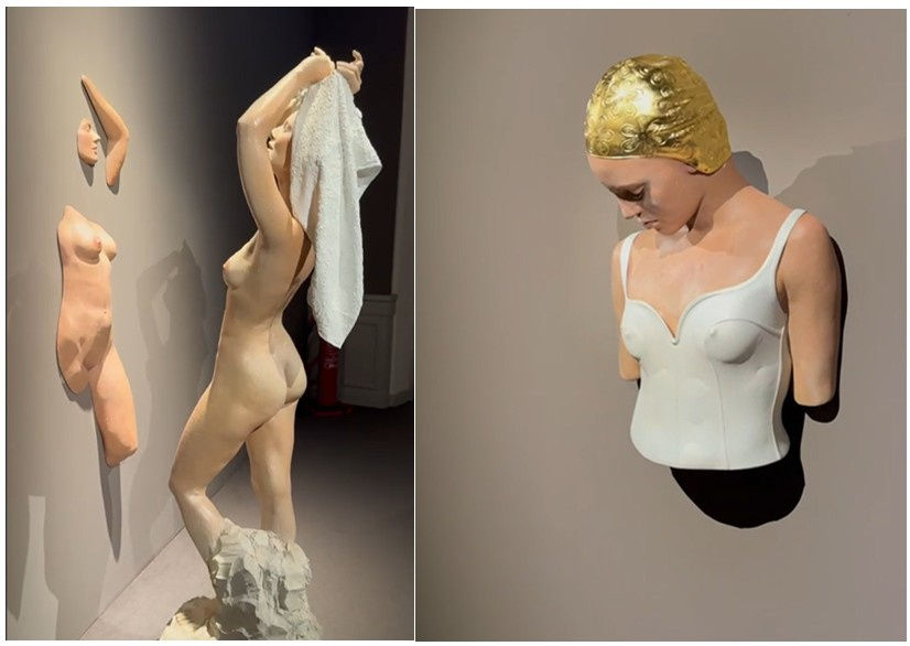 The largest and most comprehensive monographic exhibition of the artist ever held in Italy, traces more than 50 years of her work, illustrating the evolution of her technique and visual language. Displayed throughout the historic Palazzo Bonaparte, the exhibition follows Feuerman’s evolution: from her early erotic reliefs to her now-celebrated swimmers with sparkling bathing caps and sunlit skin, to fragmented wall sculptures that feel like relics from a mythic dream.