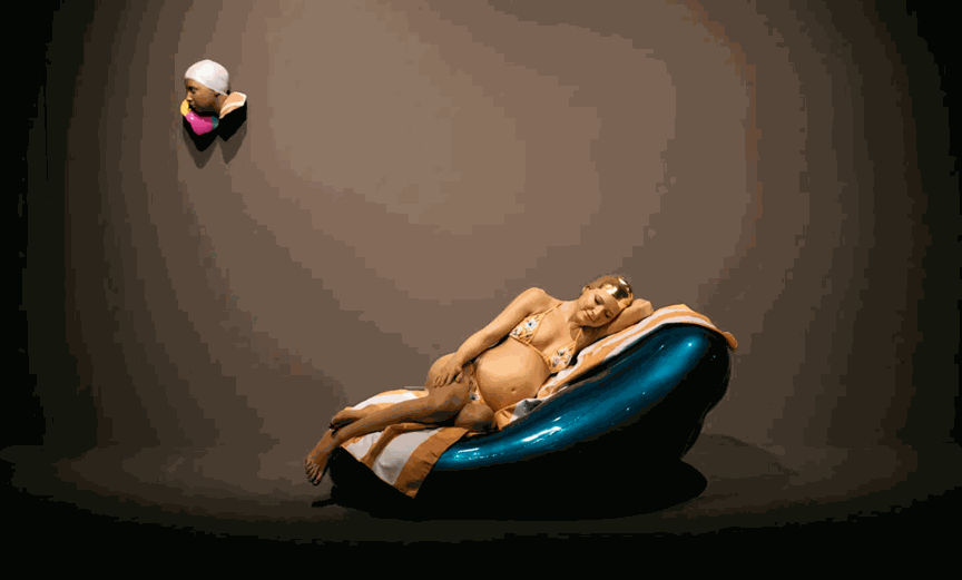 Works like relaxed figures on glossy red floats, or serene busts suspended in a moment of silence, demonstrate her unparalleled mastery of surface, anatomy and emotion