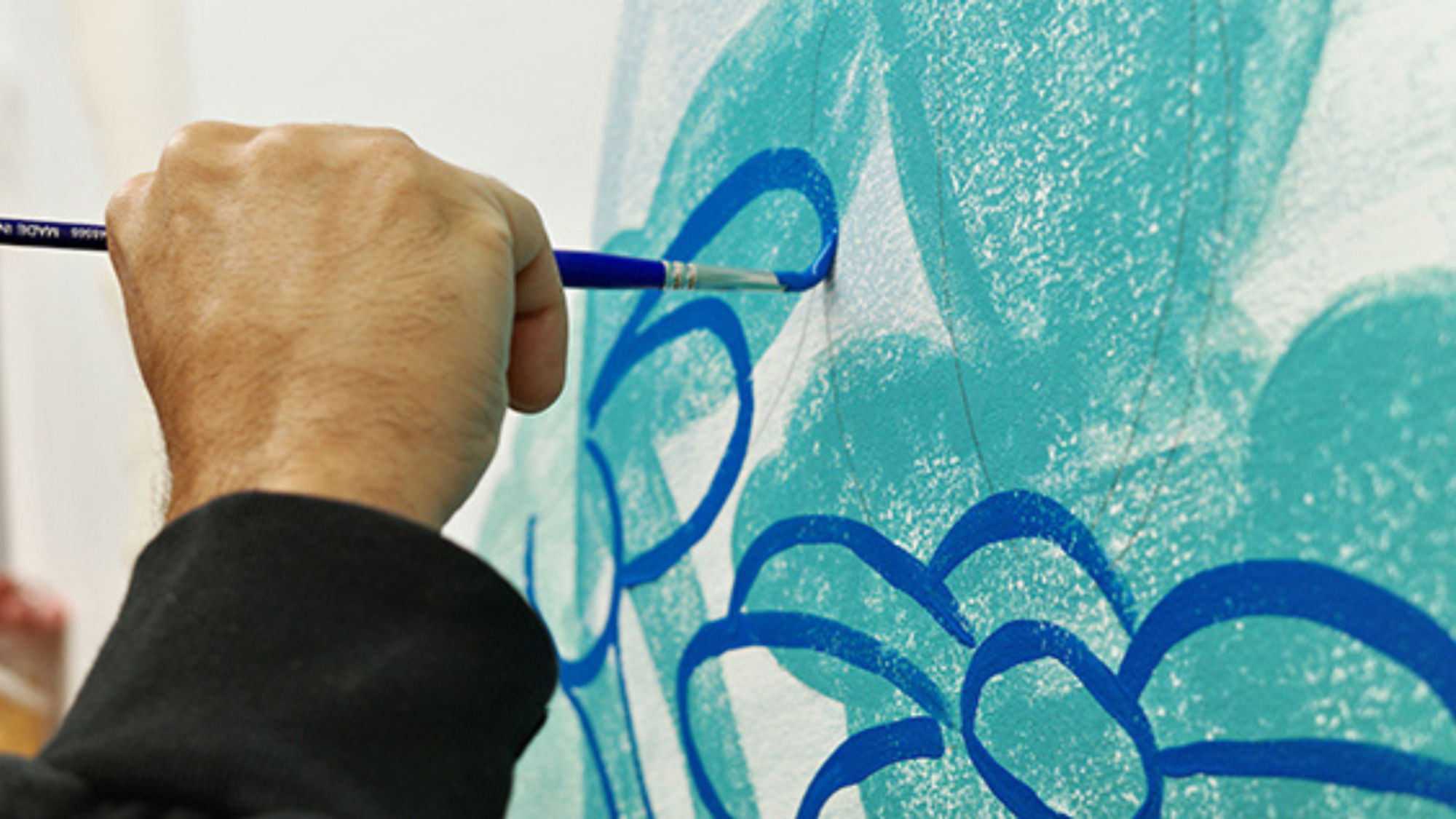 In these paintings, the background is built from seemingly abstract colors and linework, that upon deeper reflection, reveal two recurring symbols: flowers and hands. The foreground shows a main figure(s) and its shadow(s), creating a dialogue between what is seen and what is felt.